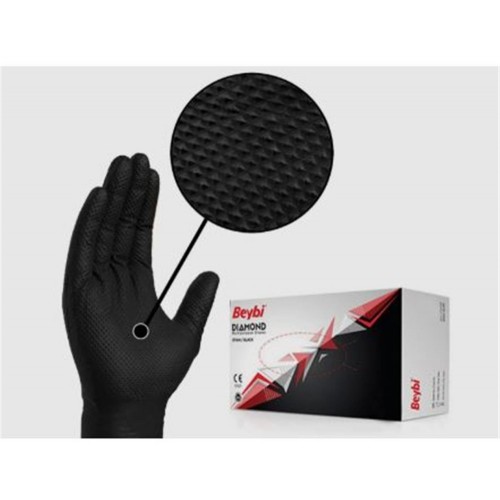 Beybi Diamond L Beden Pudrasız Kalın Siyah Nitril Eldiven Large (Kutuda 100 Adet)