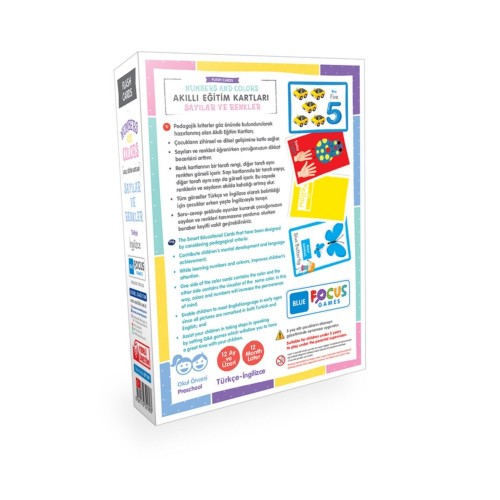Marka : BLUE FOCUS; Ürün Kodu :BF180; Barkod No :8681176321803; Önerilen Yaş Grubu : 1 Yaş ve Üzeri.; Üretim Yeri : Türkiye; Açıklama :; Pedagolojik kriterler göz önünde bulundurularak hızlanmış alan Akıllı Eğitim Kartları.; Canlı renkler ve dikkat çekici resimler seçilerek hazırlanmıştır.; Çocukların zihinsel ve dilsel gelişimine katkı sağlar.; Yeni kelimeler öğrenirken çocuğunuzun dikkat becerisini arttırır.; Tüm resimlerTürkçe ve İngilizce olarak belirtildiği için çocuklar erken yaşta İngilizceyle tanışmış olur.; Gösterdiğiniz Hayvanın sesi taklit ederken çocuklar hayvanların keyifli dünyasında eğlene bilir.; Soru-Cevap şeklinde oyunlar kurarak çocuğunuzun konuşmaya adım atmasına yardımcı olurken berbar keyifli vakit geçirebilirsiniz.; 3 yaş altı çocukların ebeveyn gözetiminde oynaması uygundur.;