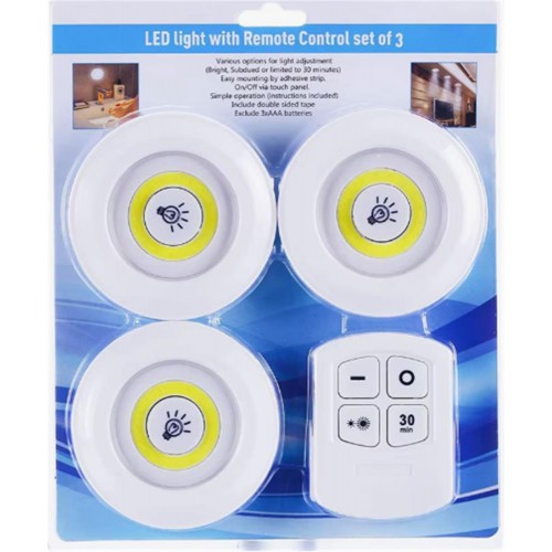 Yakut 3 Adet Kumandalı Yapıştırmalı Led Aydınlatma 3AAA Pilli