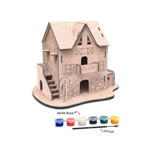 Maketix 3D Ahşap Boyama Seti Taş Ev 9786