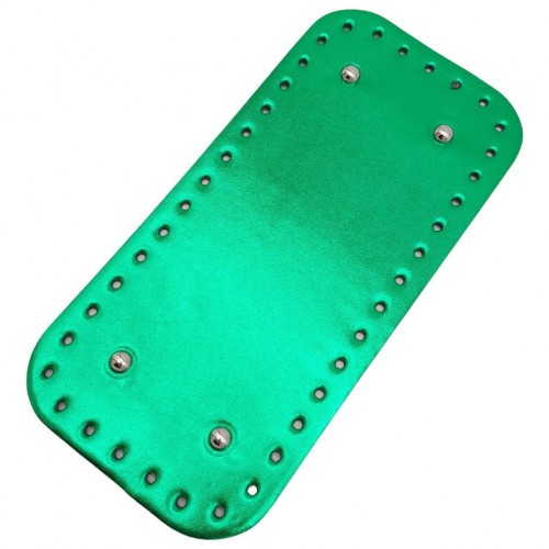 Çanta Aksesuar Parlak Rugan Deri 25x12 cm Dikdörtgen Çanta Tabanı Yeşil Renk Gümüş Metalli