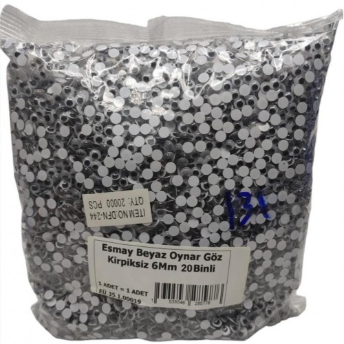Beyaz Oynar Göz Kirpiksiz 6mm 20.000 li
