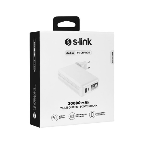 S-link G225 20000mAh Lightning+Type-C Kablolu Powerbank Beyaz 5W Prizli Taşınabilir Pil Şarj Cihazı