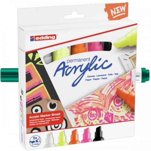 Edding Markör Akrilik Kalın Uçlu 5 Li Set Fosforlu 4-5000-6
