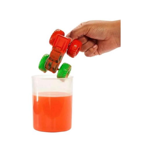 Hot Wheels Monster Trucks Renk Değiştiren Arabalar serisindeki diğer araçlara su püskürtüp araçların rengini değiştirmek için bu klipsli su tankını kullanın. Su tankı, renk değişimi eğlencesiyle birlikte çarpışma heyecanının da dahil olduğu muhteşem bir su savaşı imkanı da sunar.