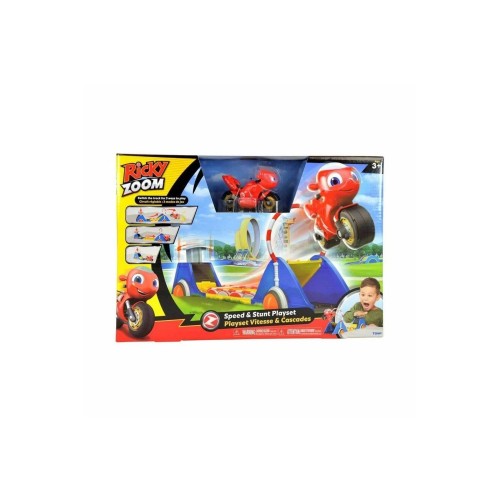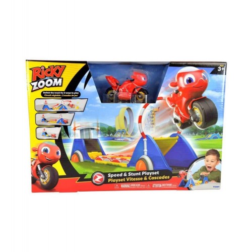 Haydi Zoomlayalım ! Ricky Zoom Parkta yarış seti çocuklara heyecan verici bir çok oyun şekli sunuyor! Süper fırlatıcı ile Ricky'e ekstra hız ver!. Setini dönüştür ve uzun hat üzerinde hız yapmanın tadını çıkar. Seti tekrar dönüşür ve süper atlamayı dene ! Macera parkındaki gibi Ricky'nin muhteşem numaralar yapmasına yardım et. Hız ve macera rozeti kazanabilmek için hedefe odaklan ve fırlayarak ya da atlayarak hedefi onikiden vur! Haydi vuruşunu yaparak rozeti fırlat! Setin içinden Ricky figürü ve onun akrobatik numaralar yapmasına yardımcı olacak iki adet aksesuar çıkar. Ön tekerlekler oynayabilir niteliktedir ve motora yön vermenizi sağlar. Figürler ve oyun setleri ile Wheelford dünyasının oyuncaklarını keşfet ! Tüm oyuncaklar Ricky Zoom çizgi filminin ruhunu, enerjisini ve eğlencesini minik Ricky Zoom hayranlarına getiriyor.