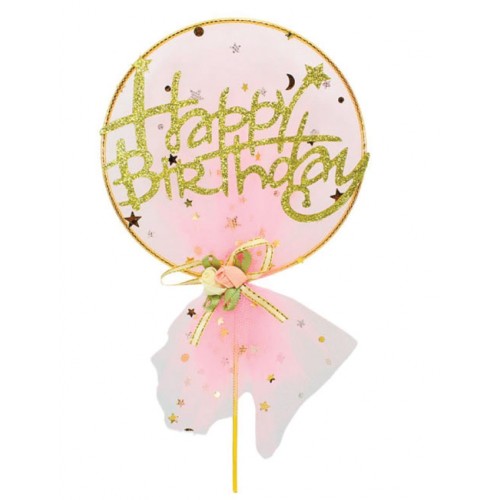 Pasta Süsü Çubuklu Metal Süs Tüllü Pembe
