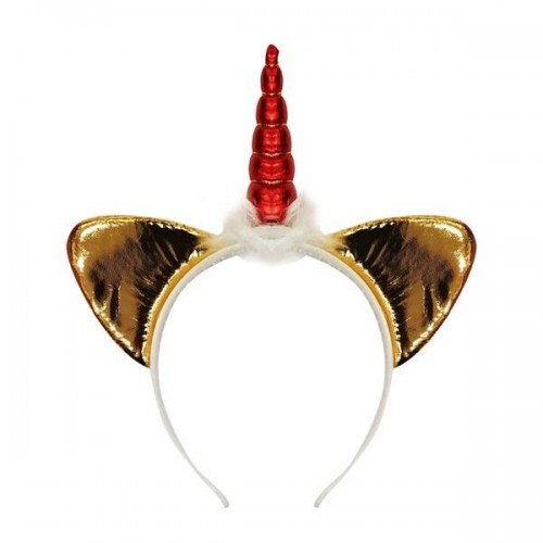 Taç Unicorn Saten Parlak Boynuzlu Tüylü