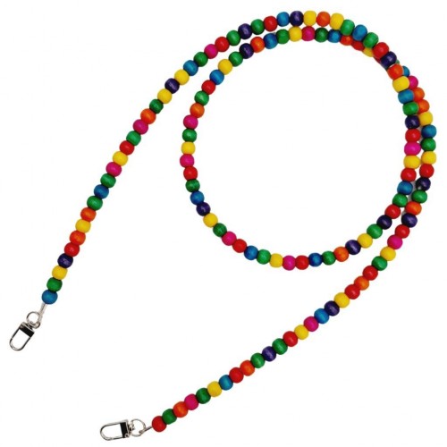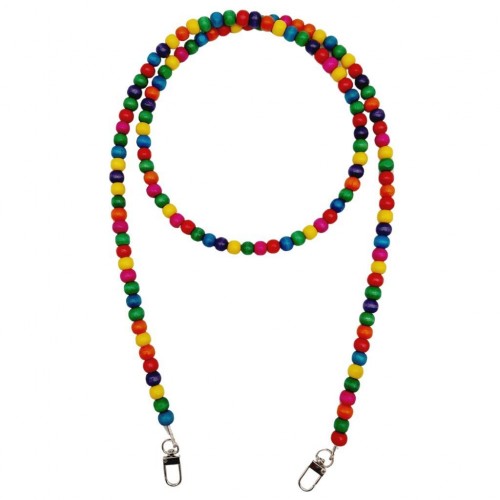 Çanta Aksesuar 120 cm Renkli 8 mm Ahşap Boncuklu Çanta Sapı Gümüş Metalli
