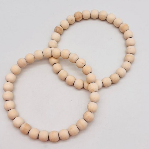 Çanta Aksesuar 13 cm Ahşap Boncuklu Bilezik Model Ham Ahşap Renk Çift Sap