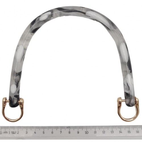 Çanta Aksesuar 16 cm Akrilik Siyah Beyaz Leopar Çanta Tutma Sapı Light Gold Metalli