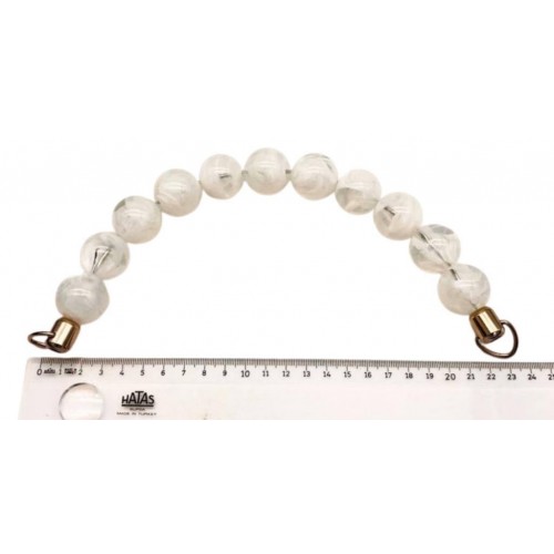 Çanta Aksesuar 20 Cm 24 Mm Boncuklu Çanta Sapı Gümüş Metalli Beyaz Tonlu