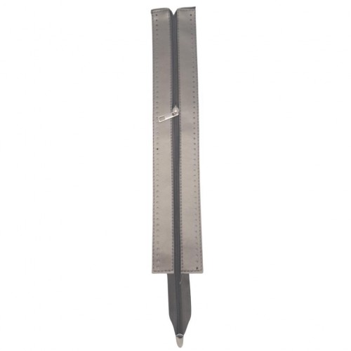 Çanta Aksesuar 40 cm Derili Fermuar Parlak Gri Renk Gümüş Metalli