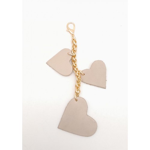 Çanta Aksesuar Bej Gerçek Deri Kalpli Süs Püskül Light Gold Zincirli
