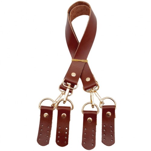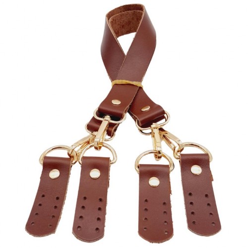 Çanta Aksesuar Gerçek Deri 55 cm Misu Model Çift Sap Kızıl Kahve Renk Light Gold Metal