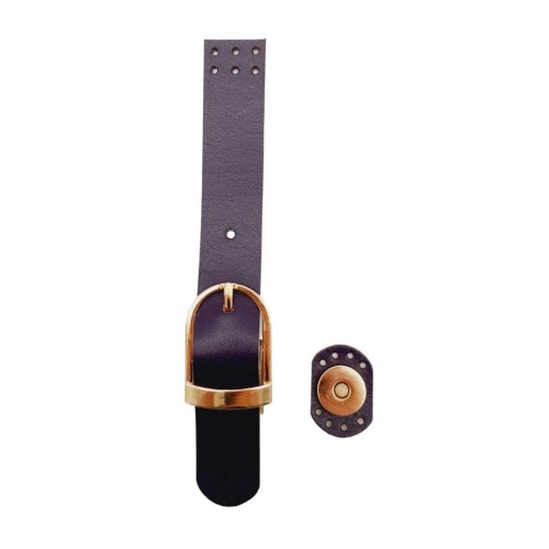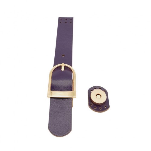 Çanta Aksesuar 18x2.3 cm Mor Renk Gerçek Deri Tokalı Çanta Kapağı Light Gold Metalli