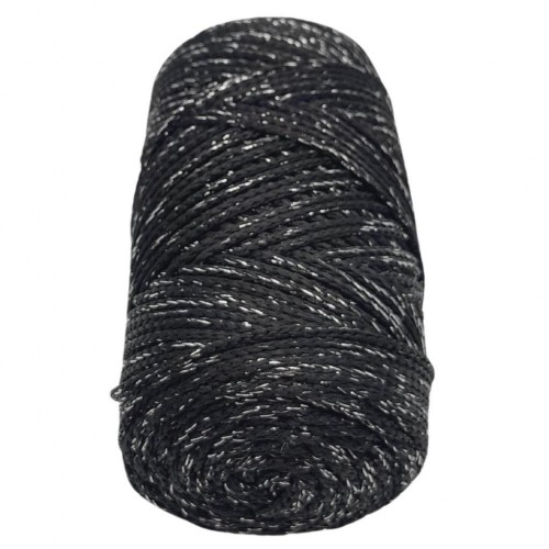 Çanta Aksesuar Renkli Simli Polyester Makrome Siyah Renk 200 gr No:03