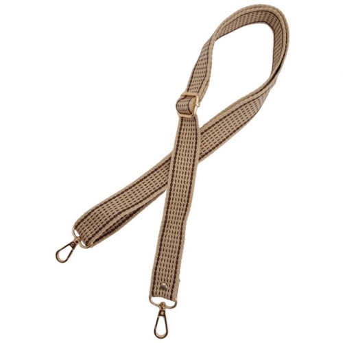 Çanta Aksesuar 120x3 cm Polyester Kolon Çanta Sapı Bej Renk Kahve Şeritli Light Gold Metalli
