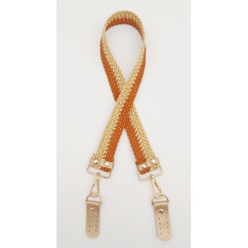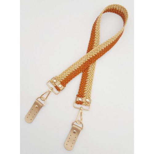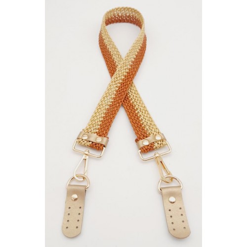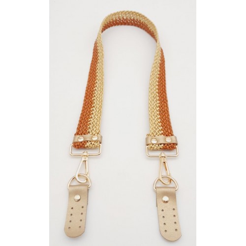 Çanta Aksesuar Gold Taba Renk Böceli Deri Hasır Örgü Çanta Sapı Light Gold Metalli