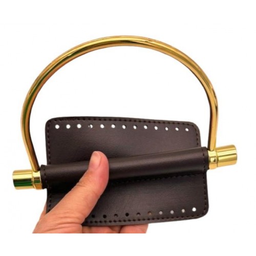 Çanta Aksesuar Suni Derili Metal Çanta Sapı İpek Model Koyu Kahve Renk Light Gold Metal
