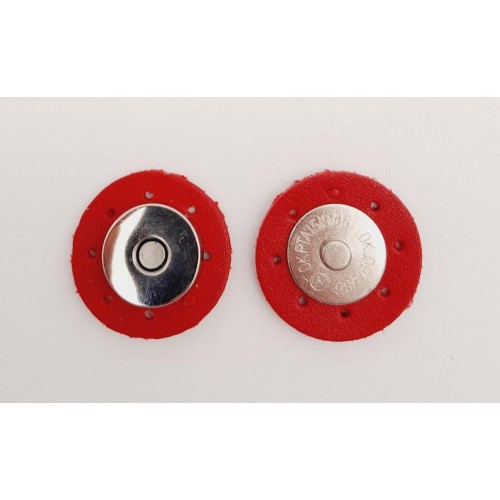 Çanta Aksesuar Kırmızı Suni Derili Mıknatıslı Çıtçıt Gümüş Metalli