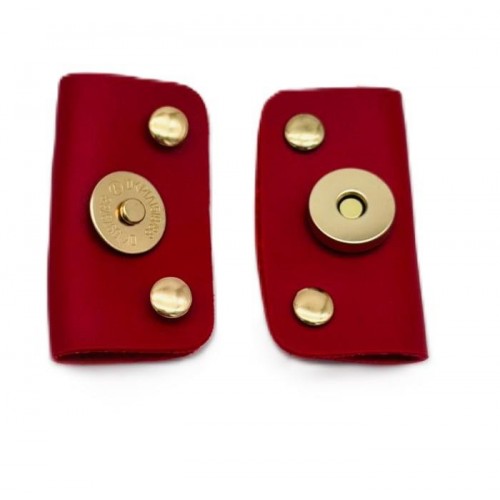 Çanta Aksesuar Kırmızı Suni Derili Troklu Mıknatıslı Çıtçıt Light Gold Metalli