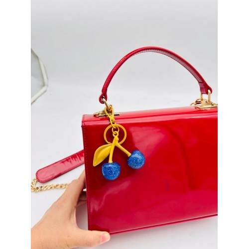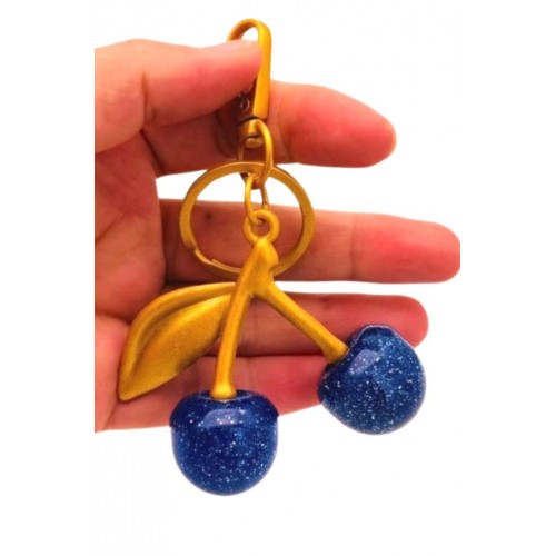 Çanta Aksesuar Mavi Simli Kiraz Anahtarlık , Çanta Süsü Antik- Gold Metalli
