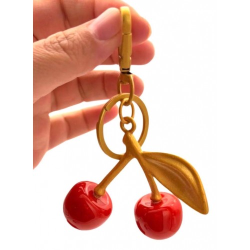Çanta Aksesuar Kırmızı Kiraz Anahtarlık , Çanta Süsü Antik- Gold Metalli