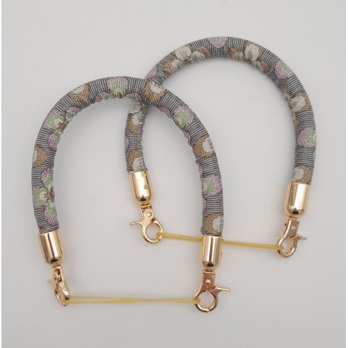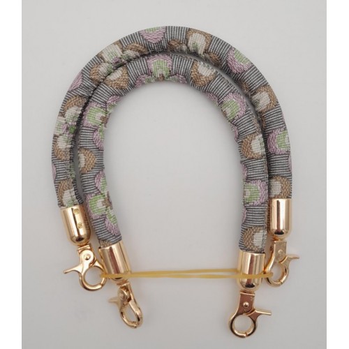 Çanta Aksesuar Çift Kısa Kordon Çanta Sapı Gri Lila Çiçekli Light Gold Metalli
