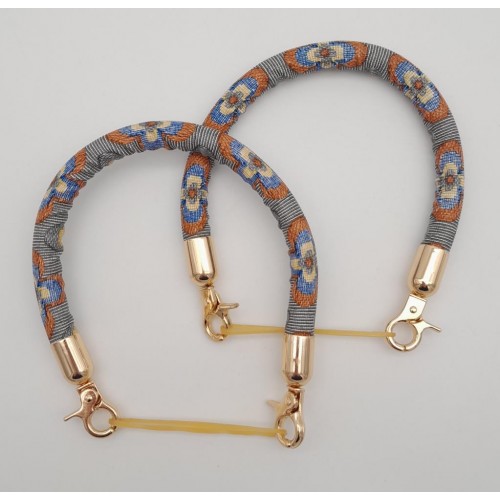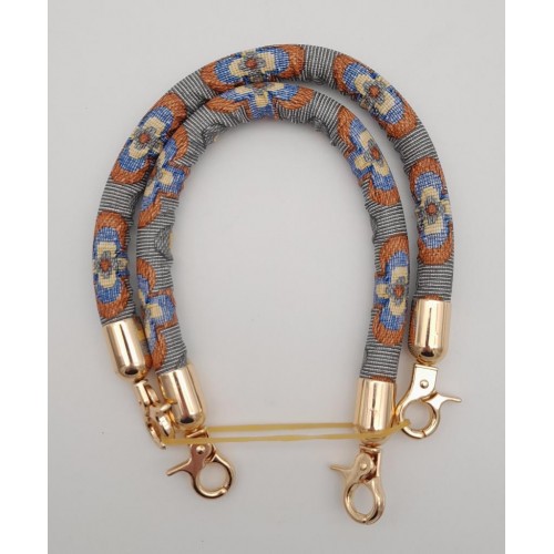 Çanta Aksesuar Çift Kısa Kordon Çanta Sapı Gri Turuncu Çiçekli Light Gold Metalli