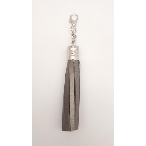 Çanta Aksesuar Parlak Gri Suni Deri Kovanlı Püskül Gümüş Metalli