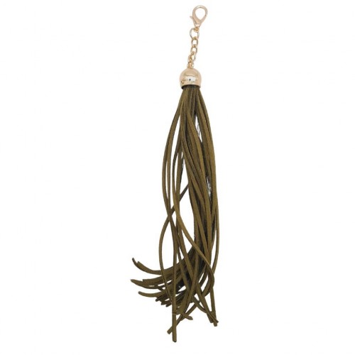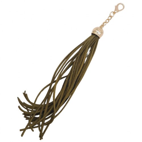Çanta Aksesuar Süet Nubuk Deri Kovanlı Uzun Püskül Haki Renk Light Gold Metalli