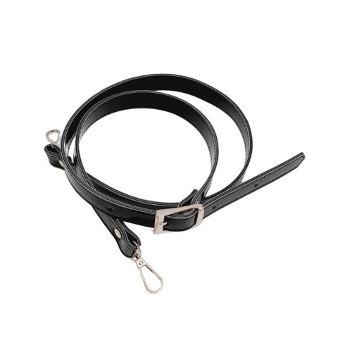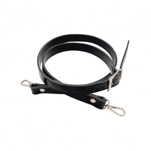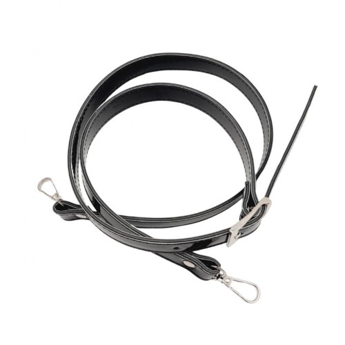Çanta Aksesuar Rugan Deri 120x2 cm Tokalı Siyah Renk Çanta Sapı Gümüş Metalli