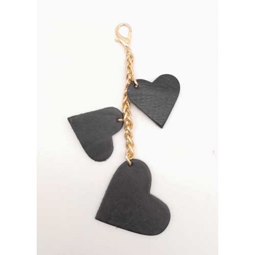 Çanta Aksesuar Siyah Gerçek Deri Kalpli Süs Püskül Light Gold Zincirli