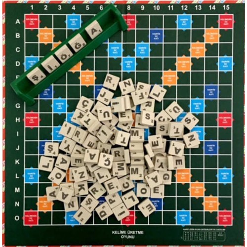Kelime Üretme Oyunu Kelime Avı Türkçe Hem zevkli hem de öğretici bir oyun arayan kullanıcıların beklentilerini mükemmel şekilde karşılayan Kelime Üretme Oyunu, aileniz ve misafirlerinizle eğlenceli saatler geçirmenize olanak sağlıyor. Beyin egzersizi yapmanın en keyifli yolarından bir tanesi olan oyun, iki ya da dört kişiyle oynanabiliyor. Her Yaş İçin İdeal Yapı 7'den 70'e herkesin eğlenerek oynayabileceği oyun Tamamen yerli üretim olan Kelime Üretme Oyunu, kelime bilgisine katkı sağlıyor ve yaratıcılığı geliştiriyor. Çocuklarla yetişkinleri bir araya getirerek her iki grubu da mutlu etmeyi başaran oyun, hem evde hem de dışarıda kolaylıkla kullanılabiliyor. Ana dil farkındalığı sağlayan Kelime Üretme Oyunu, çocukların gizil öğrenme yoluyla kelimeleri pekiştirmelerini sağlıyor. Ürün Ölçüleri Oyun Panosu : 34 x 36 cm Harfler : 2.5 x 2.5 cm Istakalar : 17 x 2.5 cm Basit ve Zevkli Kurallar Çok gezenin değil çok okuyanın avantajlı olduğu Kelime Üretme Oyunu, oyun panosu ve üzerinde harf bulunan taşlarla oynanıyor. Torba içerisinde 100 adet Türkçe karakterli harf bulunuyor. En çok puanı toplayanın kazandığı oyun, pano üzerindeki işaretleri dikkate alarak kelime oluşturma temeli üzerine dayanıyor. Torbadan çekilen harfler ile en yüksek puanlı kelimeleri üreten oyuncu ya da oyuncular, oyunu kazanıyor. Dayanıklı ve Kaliteli Malzemeler Tüm parçaları kaliteli malzemelerden üretilen oyun, uzun yıllar boyunca kullanım imkanı sağlıyor. Sert plastikten üretilen isteka ve taşlar, kırılmalara ve ıslanmalara mahal vermiyor. Mukavvadan üretilen oyun panosu, kırışma ve deforme olma ihtimalini azaltıyor. Harf torbası polyesterden, diğer malzemeler ise kağıttan üretiliyor. Oyun, her zaman her yerde oynanabiliyor olması sayesinde, oyunculara fonksiyonel bir kullanım imkanı sunuyor. KELİME ÜRETME OYUNU DİĞER KELİME OYUNLARINA GÖRE EXTRA KALİTELİDİR. Her evde bulunması gereken, aile bireylerini ve dostları biraraya getiren, boş zamanlarınızı en verimli şekilde geçirmenize yardımcı olan bir oyundur. Evde, piknikte, plajda, çay bahçesinde vb. rahatlıkla oynayabilirsiniz. Kuralları kolay, oynaması zevkli ve akıcıdır. En çok okuyan bu oyunu kazanır. Kelime bilginizi arttırır, her yaş için ideal beyin jimnastiğidir. Oyuncular, harf torbasından çektikleri harf taşlarını en avantajlı şekilde kullanarak kelimeler üretirler ve puan toplarlar. Oyun sonunda en fazla puan alan oyuncu oyunu kazanır. Istaka ve taşlar sert plastik, oyun panosu mukavva ve diğer parçalar kağıt malzemeden imal edilmiştir. Ürün Ölçüleri : Oyun Panosu : 34 x 36 cm Istaka : 17 x 2.5 cm Harf : 2.5 x 2.5 cm Paket İçeriği : 1 Adet Oyun Panosu 4 Adet Istaka 100 Adet Harf 5+YAŞ 2-4 OYUNCU"