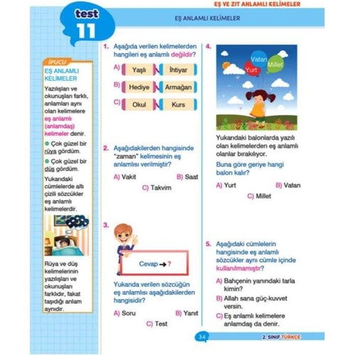 Dikkat Atölyesi 2. Sınıf İpuçlu Eğlenceli-Öğretici Türkçe Yeni Nesil Soru Bankası