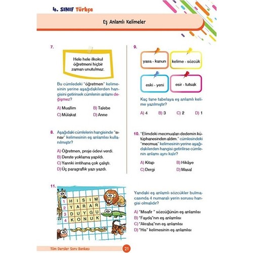 Dikkat Atölyesi 4. Sınıf Eğlenceli-Öğretici Tüm Dersler Yeni Nesil Soru Bankası
