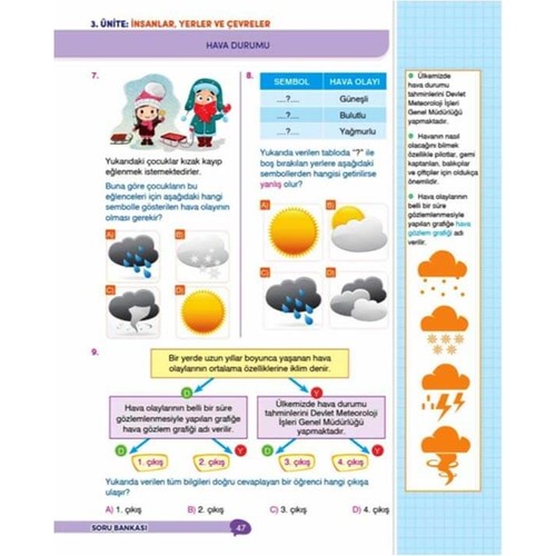 4. Sınıf İpuçlu Eğlenceli-Öğretici Sosyal Bilgiler Soru Bankası (Dikkat Atolyesi Yayınları) Yarının geleceği öğrencilerimiz için hazırlanmış olan "İpuçlu Yeni Nesil Soru Bankası” kitabında dikkat ve odaklanmayı üst düzeye ulaştırarak bilgiyi edinme, analiz etme ve sentezleme aşamalarından geçerek, yeniden yorumlama ve değerlendirme basamaklarıyla öğrenilen bilginin kalıcılığının sağlanması hedeflenmiştir. Bilgiyi eğlenceli hale getiren bu kitap; kendine güvenen, bilgiye meraklı, akıl yürütebilen öğrencilerin yetişmesini sağlayacaktır. Her bir soruyla öğrencinin, bilgiyi keşfederken dikkatini kullanarak bilgiye odaklanmasını, önceden öğrenilen bilgilerle yeni bilgilerin çıkarımını yaparak analiz etmesi sağlanmıştır. Bu kitapta yer alan sorular; öğrencinin karşılaştığı zorluklarla mücadele edebilmesi ve karşılaştığı zorluğu tüm boyutlarıyla inceleyebilmesi, öğrendiklerini sosyal yaşama aktarabilmesi için tasarlanmıştır. Yeni nesil sorularla; öğrencilerin eleştirel düşünme becerisini geliştirerek duyduğu, okuduğu ve gördüğü kavramları, olayları farklı açılardan ele alarak değerlendirebilmesi amaçlanmıştır. Uzmanlar tarafından hazırlanan İpuçlu Yeni Nesil Soru Bankası kitabı Milli Eğitim Bakanlığı kazanımlarına göre hazırlanmıştır. Bu kitap evde ve okulda öğrenmeyi pekiştirir. Unutmayın! Başarıyı kalıcı hale getirmek için tekrar çok önemlidir. Bu kitap her bir ünitede bol bol tekrar yapmanızı sağlayarak bilgiyi kalıcı hale getirecektir.