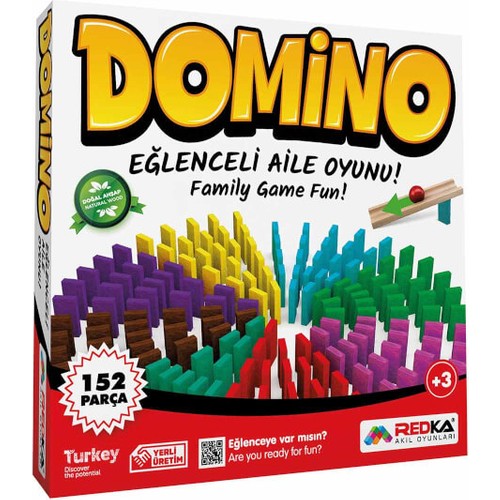 REDKA Domino Oyunu Rengarenk ahşap dominolar, birbirinden farklı eğlenceli örüntüler, şekiller ve tasarımlar yapmaya olanak tanır. REDKA rengarenk ahşap dominolarla Heyecan ve Dikkat bir arada eğlence dorukta ! Ahşap dominoları dikkatle diz, şeklini oluştur. Heyecana sen de ortak ol! Redka Renkli Ahşap Domino ile hayal gücüne göre istenilen şekiller, örüntüler oluşturabilirsiniz. Böylece çocuklar bir yandan hayal gücünü ve el becerilerini geliştirirken bir yandan da eğlenceli zaman geçireceklerdir. Bu sayede çocuklar oynamaktan sıkılmayacağı ve kendi hayal dünyalarına göre düzenleyeceği bir oyun elde etmiş olurlar. Oyunda amaç; Ahşap dominoları art arda dizdikten sonra en baştaki taşı devirdiğinizde dominoların düzenli bir şekilde yıkılmasını sağlamaktır. Oyunda ayrıca resim oluşturulabilir, isim yazılabilir veya daha birçok şey yapılabilmektedir. Kutu içeriği: Redka Domino oyunu, 9 farklı renkte 150 parça ahşap domino taşı, 1 adet ahşap köprü ve 1 adet plastik bilye olmak üzere toplam 152 parçadan oluşur. Yaş: +3 yaş üzeri çocukların oynaması için uygundur.