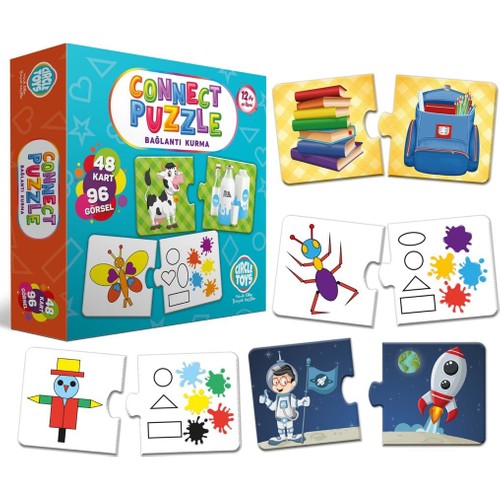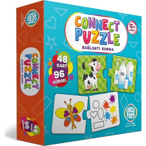 Circle Toys Connect Puzzle Bağlantı Kurma Oyunu Kutu İçeriği: 48 kart ve 96 görselden oluşan "Connect Puzzle" oyunu; çocukların parça bütün algısı, görsel algı becerisi ve düşünme becerilerinin gelişimine katkı sağlar.Kartların bir yüzü 24 farklı hayvanın anne ve yavrusunu gösteren görsellerden diğer yüzü ise bir hayvan ve gölgesinden oluşmuştur.24 çift puzzledan oluşan bir oyun. Maymun-muz, arı-bal, inek-süt gibi. Diğer yüzünde ise, 24 adet obje kart ve bu kartlardaki geometrik şekil ve renkler arasında bağlantı kurma oyunudur.