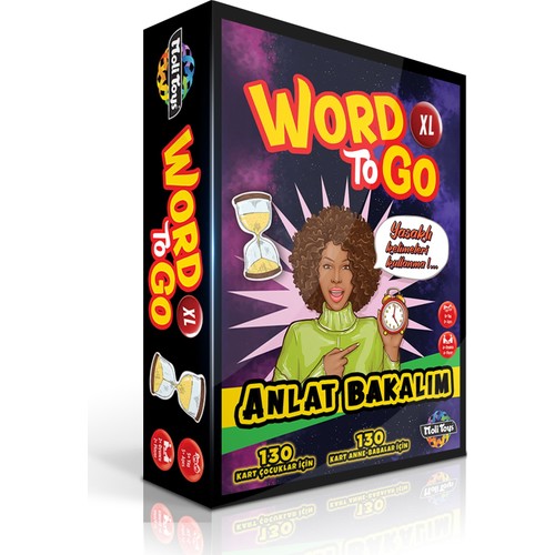 Takımın soru kelimesini bulmasını sağla ve kazan. Dikkat et! Yasak kelimeleri kullanma. Karşı takımın size düdük çalmasına izin vermeyin Içindekiler: 130 adet çocuklar için kart ; 130 adet anne-Babalar için kart ; Oyun düdüğü ; Kum saati ; Puan defteri ; Oyun kılavuzu