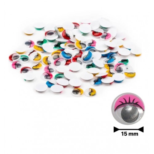 Renkli Oynar Göz Kirpikli 15Mm 100 Lü G55592