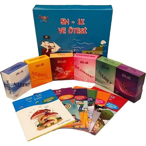 5N - 1K ve Ötesi Seti Taşıma Kutusu 6 kitap (Her kitap 48 sayfa, toplam 288 sayfa) 6 Kart kutusu (Toplam 330 soru-cevap) Kart ölçüsü: 9x11 cm 3-6 Yaş Öğrenmenin temelini oluşturan, bireyi çok yönlü düşünmeye sürükleyen ve yaşamsal süreçlerdeki farkındalık düzeyini gün yüzüne çıkaran soru ve çözümlerden oluşan kapsamlı bir settir. Dinleme ve dinlediğini anlama yeteneği iletişim sürecinde önemlidir. İletişimi anlamlı kılan ve iletişimin devam etmesini sağlayan dinleme becerisidir. Dinlediklerini anlama olmazsa iletişim devam etmez, hatta çatışmaya yol açabilir. Birçok çatışmanın temelinde birbirini anlamama yatar. Çocukların sağlıklı sosyal ilişkiler geliştirmesi için bir başkasını dinleme ve dinlediklerini anlama yeteneklerinin güçlendirilmesi gerekir. Bu yetenekler, çocukların okuldaki akademik becerilerinin de gelişmesini sağlar. Sınıfta anlatılan bilgilerin dinlenmesi önemlidir; ancak daha önemli olan anlatılan bilgileri anlayabilmektir. Bu set, okulöncesi dönemdeki çocuklar için, yani okuma-yazma becerisi olmayan çocuklar için hazırlandı. Dolayısıyla akademik beceriler ve en önemlisi okuduğunu anlama becerisi için bir ön hazırlıktır. Kitaptaki etkinliklerle çocuk dinlediklerini ve gördüklerini anlama yeteneğini geliştirecek, okul çağında ise gördüklerini, okuduklarını ve dinlediklerini daha çabuk anlama becerisi kazanacaktır. Okula başlayan çocuklar, kısa sürede okuma-yazma becerisi edinir; ancak birçoğu uzun süre okuduklarını anlamakta güçlük çeker. Özellikle uzun cümle ve metinleri anlayamaz. Birçok öğrenci sınavlarda soruları doğru anlayamadıkları için ya yanıtsız bırakmakta ya da yanlış cevaplamaktadır. Sosyal ilişkilerde de dinleme ve dinlediğini anlama yeteneği gerekli olan becerilerin başında yer alır. Sosyal ilişkileri iyi olan bireylerin ruhsal gelişimi de sağlıklı olur. En çok arkadaşı olan ve sosyal ilişkileri iyi olan bireylerin çok iyi dinleme becerisine sahip oldukları saptanmıştır.