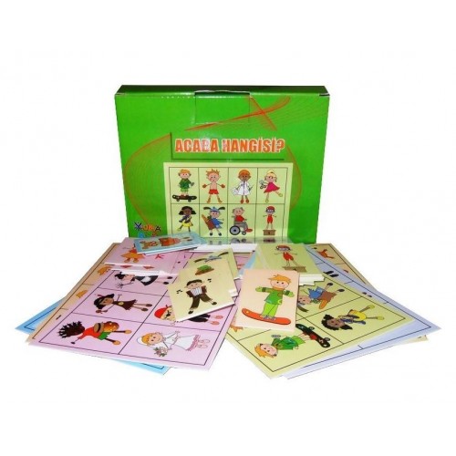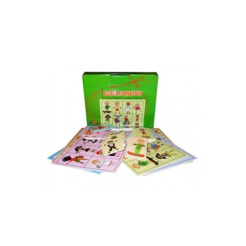 Acaba hangisi? (plus);yuka kids;barkod: 6059039680;çıkış tarihi: 2016;yazar: Kollektif;6 ana kart 48 tamamlayıcı kart;bireysel veya takım oyunu olarak oynanabilir. Eşleştirme veya bingo oyunu olarak da kullanılabilir.;amaç: Ifade edebilme hayal gücü görsel algı ve düşünme becerilerini geliştirme;acaba hangisi oyunu: Oyunculardan biri ana kartlardan birini alır. Rakip oyuncu ise ana karta ait kartlardan birini seçer ve kartta ait bir nitelik söyler. (örneğin kırmızı kazaklı). Söylenen özelliğin ayırt edici olmasına dikkat edilmelidir. Aksi durumda tahmin zorlaşır. Ana kartı tutan oyuncu bu özelliğin kartındaki hangi resme ait olduğunu tahmin etmeye çalışır. Sadece bir tahmin hakkı vardır. Eğer yanlış tahmin ederse bir hak daha tanınır ve bu arada kartta ait bir özellik daha söylenir.;en çok doğru tahmini olan oyuncu veya grup oyunu kazanır.