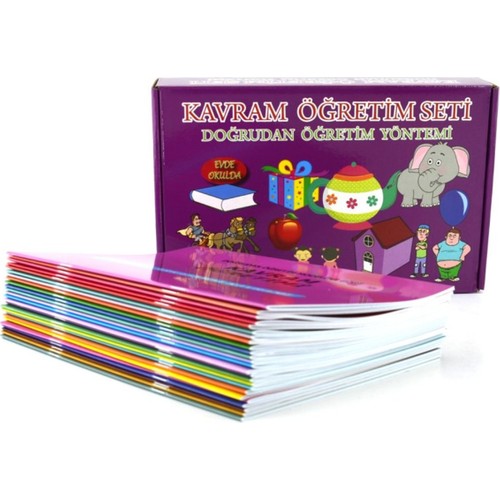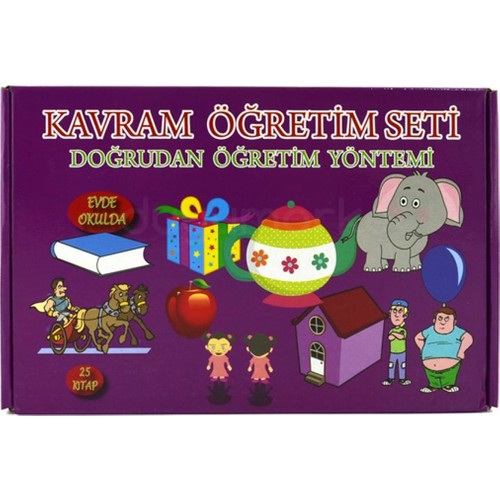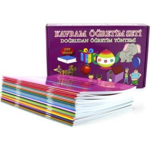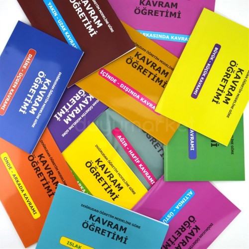 • Setin içinde 25 adet kitap yer almakta. Kitaplar 12 x 18 cm ebadında. Her kitap 26 sayfadan oluşmakta ve her kitapta 2 kavramın öğretimine yer verildi. Kavram öğretim kitapçıkları karşılıklı öğretim sürecini zevkli hale getiren kolaylaştıran ve zenginleştiren piramit tekniğine uygun biçimde düzenlendi. Her kavram Doğrudan Öğretim Modeline göre kavramın ilişkili ve ilişkisiz nitelikleri dikkate alınarak 3 aşamalı olarak hazırlandı ve her aşama 4 adımda verildi. 1. Aşama: Aynı türde ve aynı tipte iki nesne (4 araç seti) 2. Aşama: Aynı türde farklı tipte iki nesne (4 araç seti) 3. Aşama: Farklı türde farklı tipte iki nesne (4 araç seti) Setimiz bireysel öğretim amacıyla geliştirmiştir. Masa üstü piramit takvim gibi eğitimci sayfayı çevirdiğinde yönergeyi okuyup çocuğu yönlendirecektir. Çocuk sadece nesne görsellerini görüp eğitimcinin yönlendirdiği gibi süreci devam ettirecektir. Setin içinde yer alan kavramlar şunlardır: 1. Büyük - Küçük Kavramı 2. Uzun - Kısa Kavramı 3. Kalın - İnce Kavramı 4. Az - Çok Kavramı 5. Dolu - Boş Kavramı 6. Altında - Üstünde Kavramı 7. İçinde - Dışında Kavramı 8. Açık - Kapalı Kavramı 9. Şişman - Zayıf Kavramı 10. Temiz - Kirli Kavramı 11. Islak - Kuru Kavramı 12. Gece - Gündüz Kavramı 13. Sıcak - Soğuk Kavramı 14. Mutlu - Mutsuz Kavramı 15. Yakın - Uzak Kavramı 16. Alçakta - Yüksekte Kavramı 17. Ağır - Hafif Kavramı 18. Önünde - Arkasında Kavramı 19. Önde - Arkada Kavramı 20. Ön - Arka Kavramı 21. Geniş - Dar 22. Kırmızı - Yeşil Kavramı 23. Mavi - Sarı Kavramı 24. Daire - Üçgen Kavramı 25. Kare - Dikdörtgen Kavram