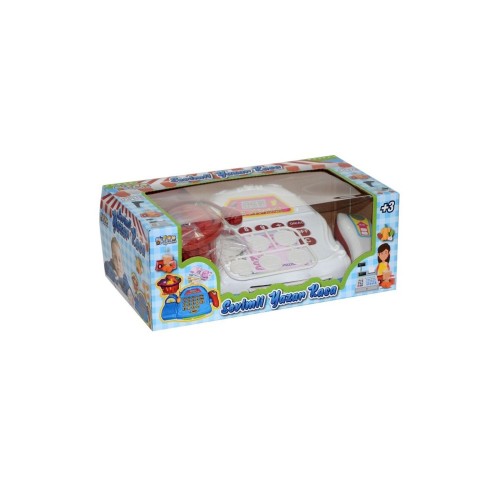 Set içerisinde; yazarkasa, bozuk para, market sepeti ve yiyecekler yer almaktadır.