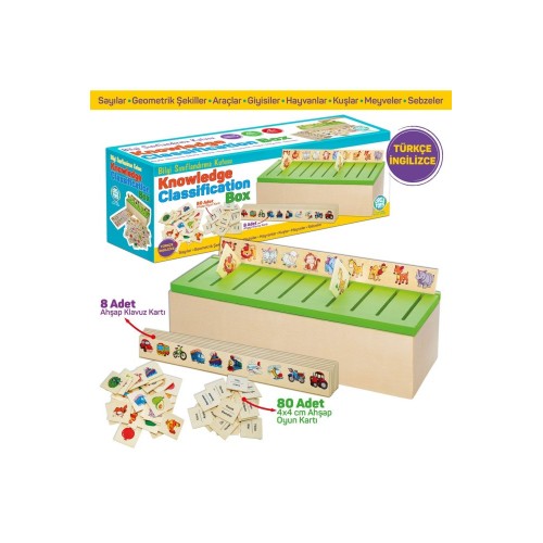 Ahşap Bilgi Sınıflandırma Kutusu Eğitici Mazgallı Oyuncak 88 Parça Knowledge Classification Box