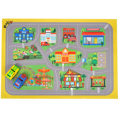 - Yumuşak zemin dokusu sayesinde, bebeğiniz plastik arabalarla oyun oynayabilir.- Halının üzerindeki figürler sevimli miniklerin görsel ve bilişsel zekâsının gelişimine katkı sağlar.- El ve göz koordinasyonunun gelişiminde destekler.- Sahip olduğu özel yapısı sayesinde, bebeğinizin sağlığına zararlı hiçbir kimyasal madde barındırmaz- Kolay taşınabilirliği sayesinde gittiğiniz her yere rahatça götürebilirsiniz.- İçerisinde 1 adet oyun halısı ve 2 adet kırılmaz araba çıkmaktadır.- Urun Ölçüsü: 65x85 cm.- Satın alınan ürün, renk, desen ya da görünüm olarak sayfada gördüğünüz ürüne göre farklılık gösterebilir. Sipariş verdiğinizde stokta bulunan herhangi renk, desenli ürünlerden bir adet gönderilecektir, renk/desen seçimi yapılamayacaktır.
