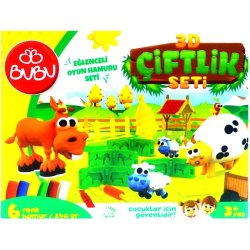 Bubu 3D Çiftlik Oyun Hamuru Kalıbı Ve 6 Renk Oyun Hamuru Seti Ürün İçeriği 3D Hayvan Figürleri 4 adet Çiftlik Malzeleri Kesme ve şekillendirme aparatlarti 6 renk 240 gram oyun hamuru Ürün kutulu olarak gönderilmektedir