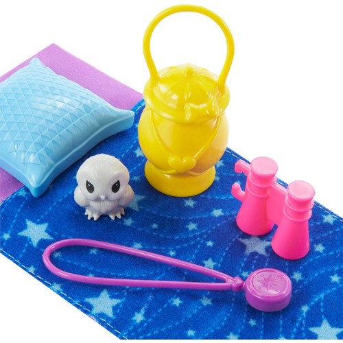 Kutu İçeriği: Bahçıvan tulumu ve ayakkabı giyen Chelsea Bebek (15 cm), 1 adet baykuş figürü, 1 adet uyku tulumu, 1 adet yastık, 1 adet pusula, 1 adet dürbün ve 1 adet fener içerir..